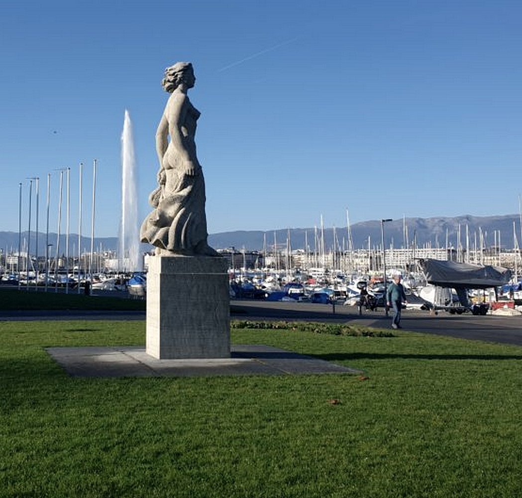 aux deux bords du Lac (de Genève pour les Suisses, Léman pour les Français) que Genève enjambe, la ville est limitée par deux somptueux parcs où règne cette typique atmosphère paisible ; le jet d’eau de 100 m. de haut, symbole (bizarement phallique pour des protestants) de son ambition et de sa vitalité, ponctue une façade de banques cossues, dominées par la cathédrale. Ordre, banques et carte postale : des symboles en escadrille