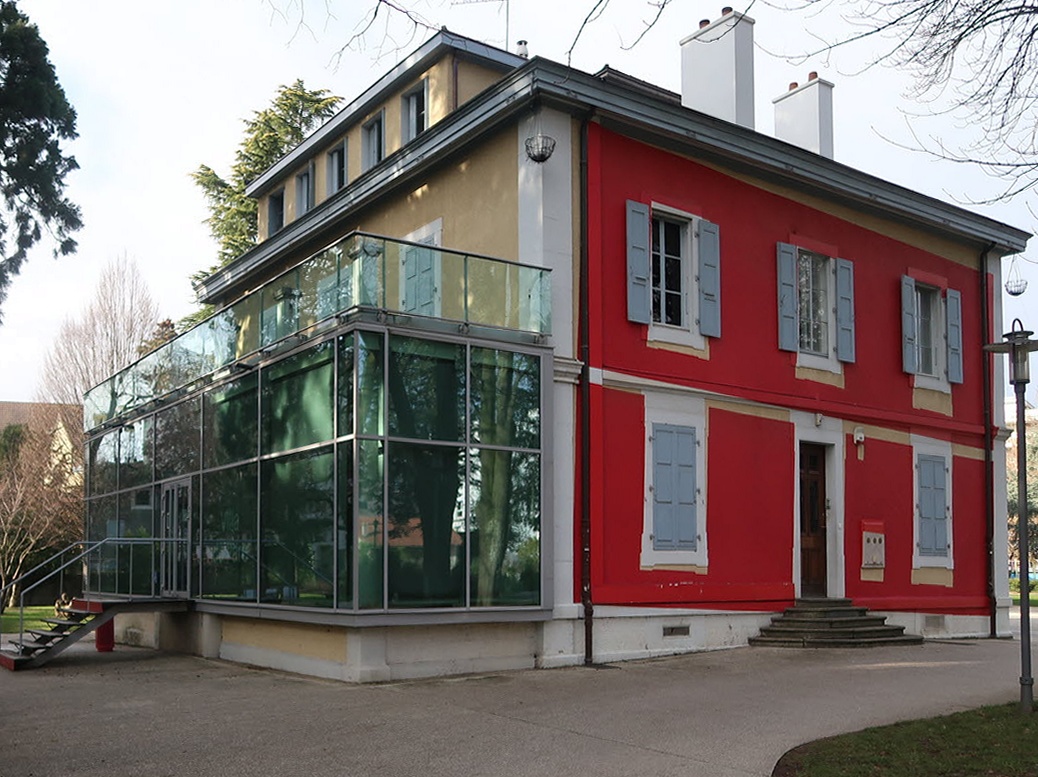 > la Villa du Jardin Alpin est le siège et lieu d’expo de la Société Suisse des Beaux-Arts (entrée libre), situé en banlieue nord (Meyrin), juste derrière l’aéroport dans un beau parc